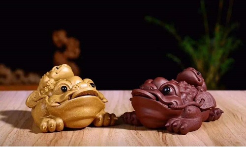 金蟾茶寵是一種比較受寵愛的茶寵,這蟾蜍并非普通蟾蜍,它擁有三只腳。傳說它本是妖精,后被劉海仙人收服,改邪歸正,四處幫貧人,吐錢給人們,所以后來被人們當作旺財瑞獸。金蟾所到之處,為金錢集聚之地。