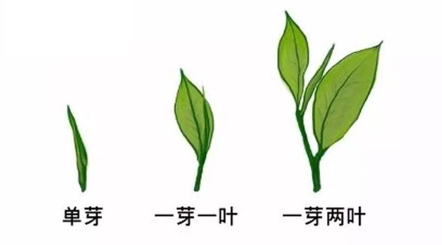 一槍一旗:一芽一葉,因為茶芽未舒展時尖細(xì)如槍,茶葉已舒展時如旗幟。又稱”中芽”。