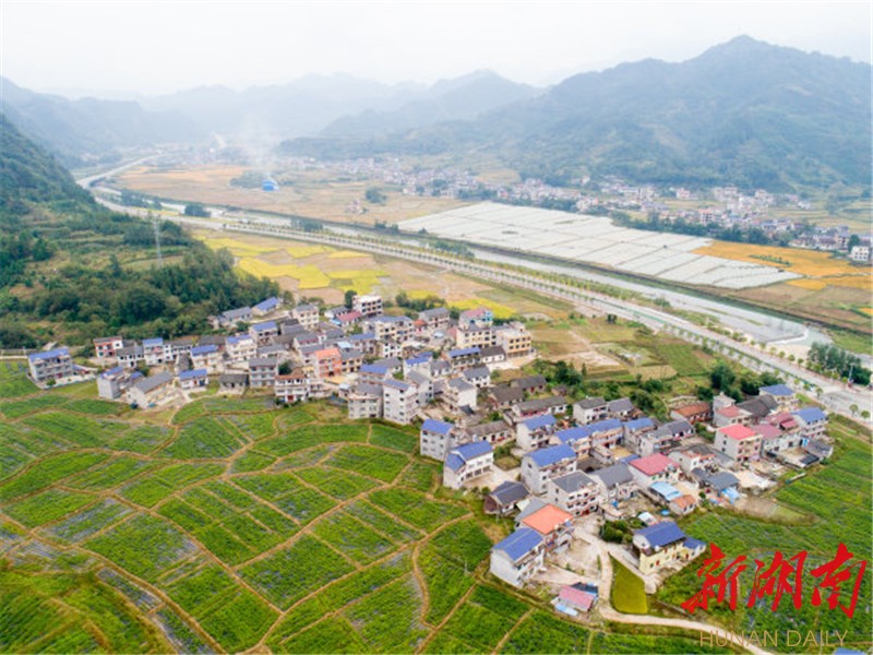 (10月10日,張家界市永定區(qū)教字埡鎮(zhèn)七家坪村,村里建有400余畝莓茶基地。)