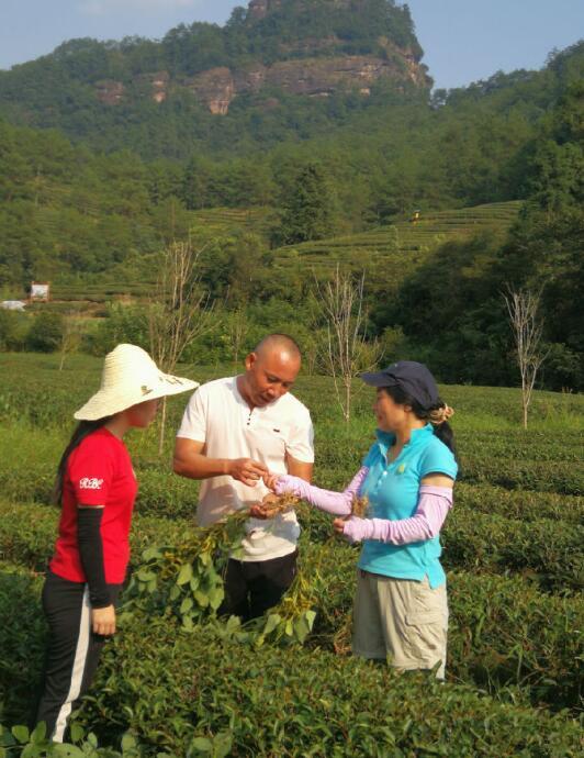 為探索茶園高效、生態(tài)、環(huán)保建設(shè)模式,福建農(nóng)林大學(xué)根系生物學(xué)研究中心主任廖紅與團隊走進(jìn)星村鎮(zhèn),把高效豆科作物提高茶樹的養(yǎng)分利用效率,并達(dá)到減肥增效等科研成果,運用到茶葉基地建設(shè),以提高茶葉的產(chǎn)量及質(zhì)量。廖紅教授認(rèn)為,茶豆套種作用明顯,大豆可產(chǎn)生根瘤菌,具有固氮作用,增加土壤肥力,茶園里套種大豆可少下或不下氮肥。同時,金龜子、蚜蟲等更喜歡大豆葉子,從而減少茶樹蟲害。還能增加茶葉產(chǎn)量,實驗表明,靠近大豆的茶樹每平方米可長出190個芽梢數(shù),比沒有靠近大豆的茶樹多出一倍。