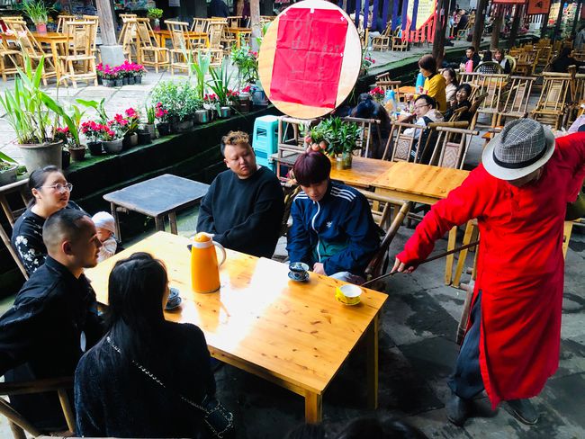 老周的生活,從一杯蓋碗茶開始,喝一口茶,跟客人擺會(huì)龍門陣,張家長李家短,可以消磨一天的時(shí)光。上過央視,經(jīng)常接受電視、報(bào)紙采訪的老周,已經(jīng)成了古鎮(zhèn)的“網(wǎng)紅茶倌”。不少游客慕名到他的茶館來,喝杯蓋碗茶,給他拍照、寫生,聽他講古鎮(zhèn)的前世今生。